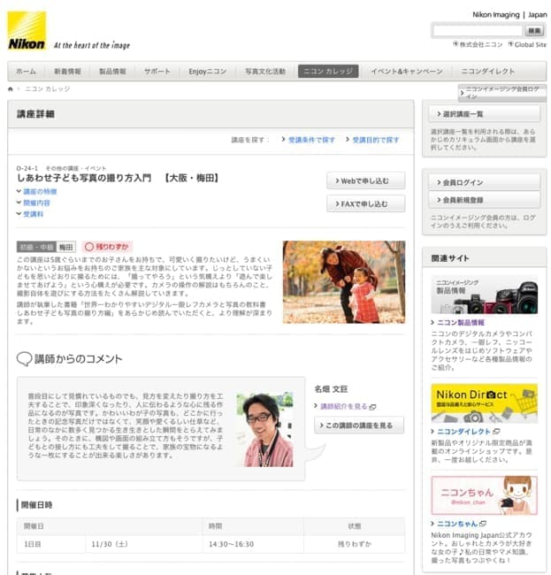ニコンカレッジ「しあわせ子ども写真の撮り方入門」講座