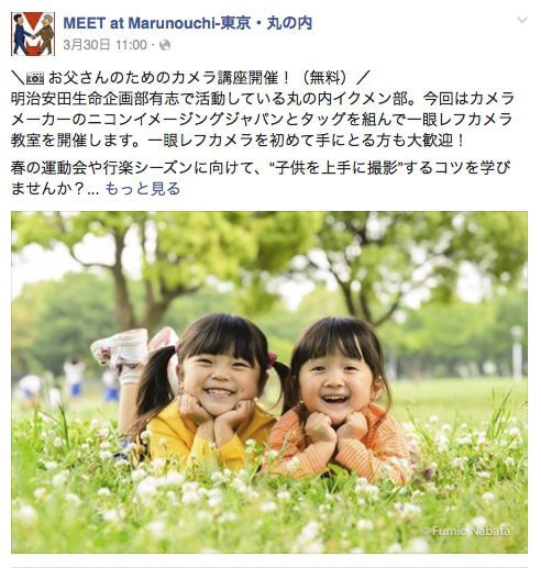 明治安田生命企画部有志の方々で活動されている丸の内イクメン部主催の「お父さんのためのカメラ講座」で講演をしました。ニコンイメージングジャパン協賛により東京丸の内の明治安田生命ビルで開催。丸の内界隈にお勤めのたくさんの方々に受講いただきました。