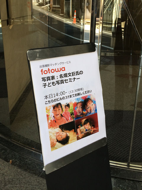 出張撮影マッチングサービスfotowa(ピクスタ株式会社主宰)のプロカメラマン向けセミナー「パパ・ママが本当に欲しい子ども写真の撮り方セミナー」で講演をしました。プロ向けのセミナーは初でしたが、受講の方々はとっても熱心に聞いていただきました。