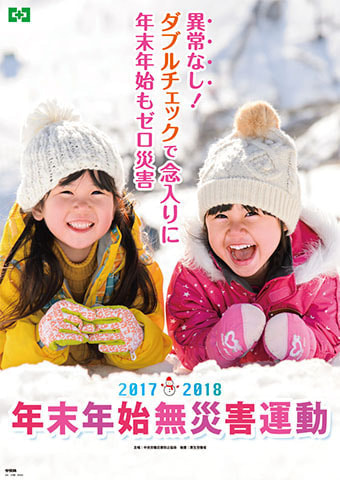 中央労働災害防止協会(中災防)の年末年始のキャンペーン「年末年始無災害運動」ポスターに採用されました。中災防ポスターは2017年度夏の「全国安全週間」、秋の「全国労働衛生週間」から今回の冬のキャンペーンと3連続採用となりました。